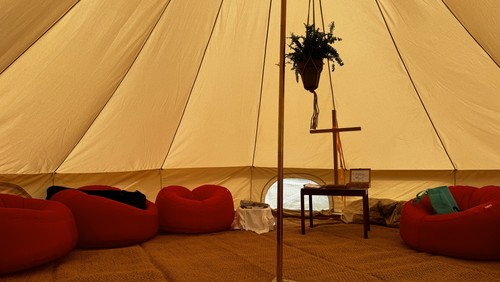 Der er mulighed for at hilse på en af præsterne, der vil være bibelhistorier for børn, 'syngsammen'er, yoga og meditation og ren hygge.